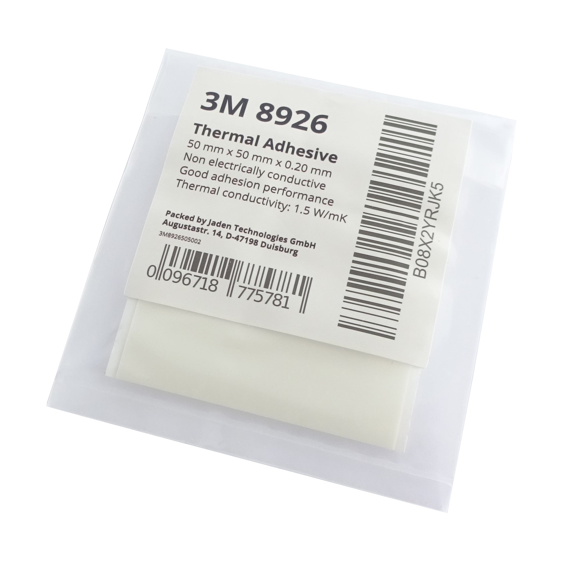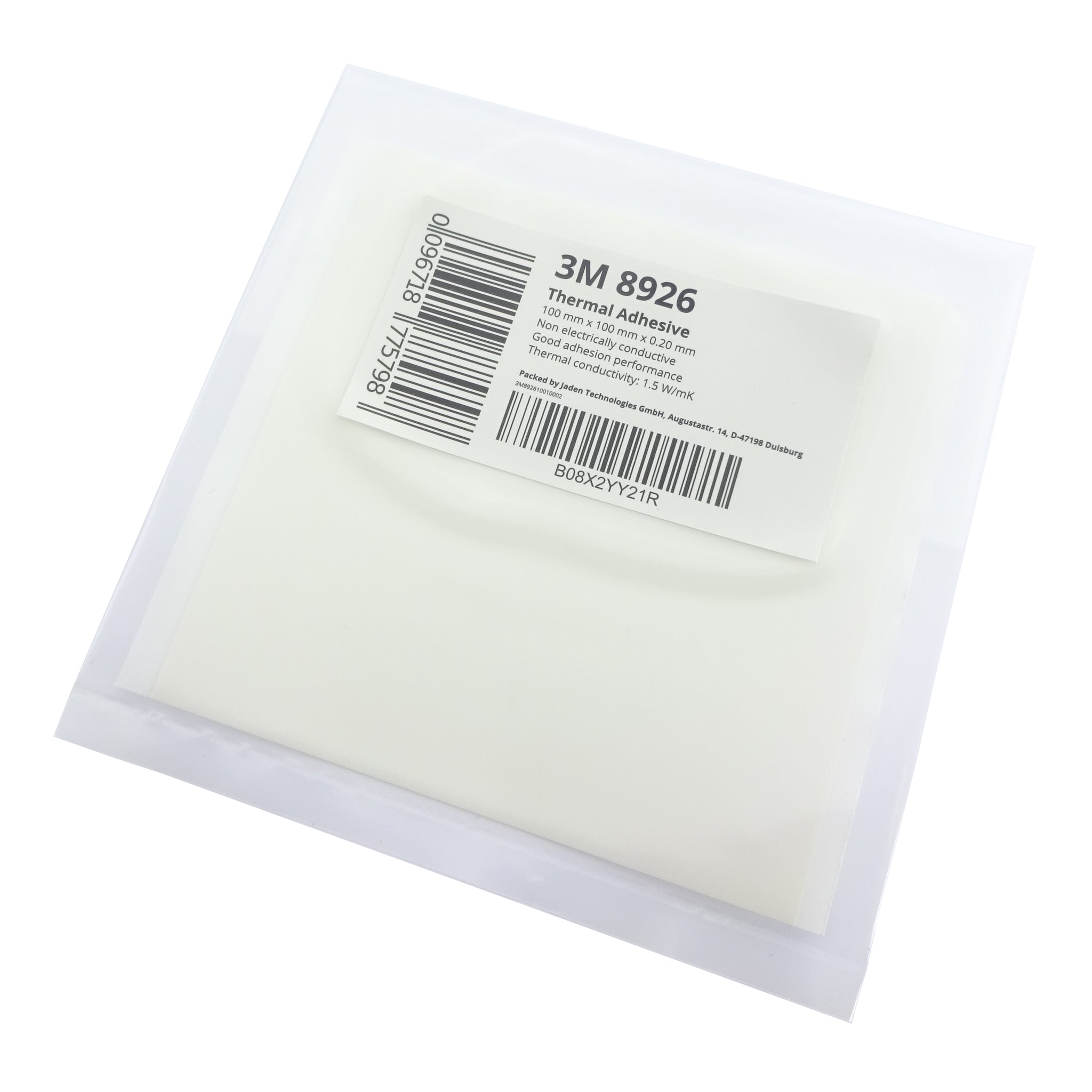 3M™ Thermally Conductive Interface Tape 8926 Series has 0.20 mm thick pressure sensitive adhesive tapes filled with thermally conductive ceramic particles. These products are designed to have good converting ability, handing and re-workability through the introduction of a thin PET carrier. 3M tape series 8926 is designed with a soft acrylic polymer and multiple thickness options to allow excellent wet-out or conformability to many surfaces. The tape series has good adhesion performance to many substrate types and has excellent dielectric performance.